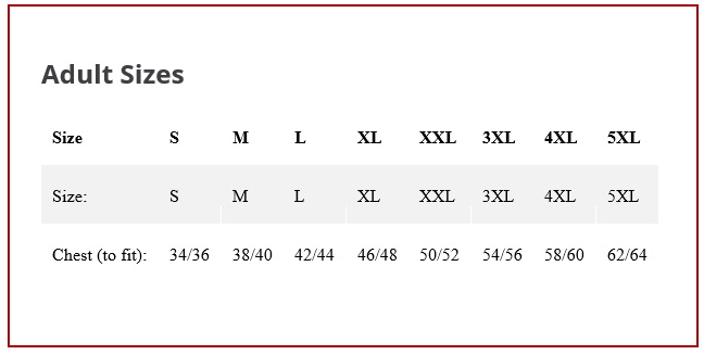 Chest To Fit (ins) 34-36 38-40 42-44 46-48 50-52 54-56 58-60 62-64