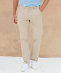 Men's slim fitting chino with stretch and new Flex waistband for additional comfort. Includes YKK front zipper, belt loops, slanted side pockets, two single jet back pockets, back darts for added fit and DTM buttons. BSCI certified.