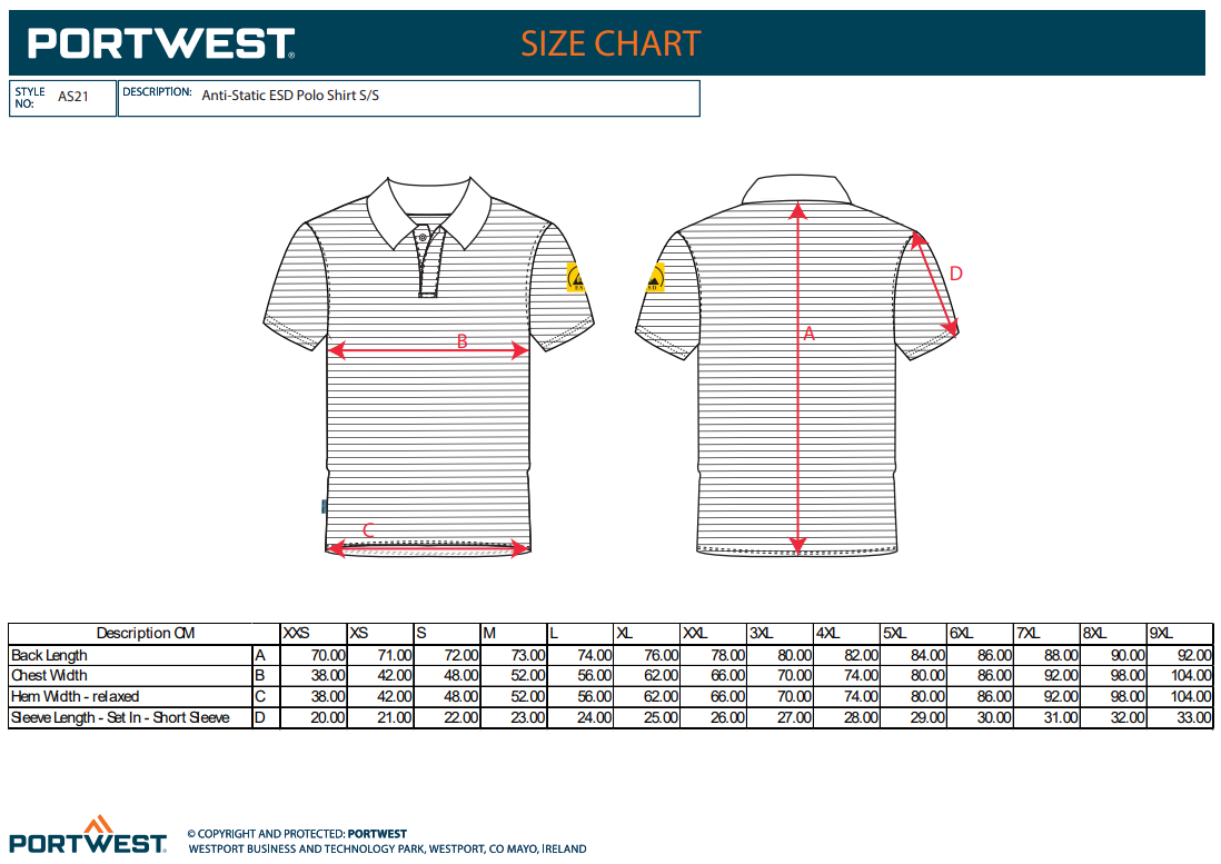 Portwest AS21 Anti-Static ESD Polo Shirt S/S AS21
