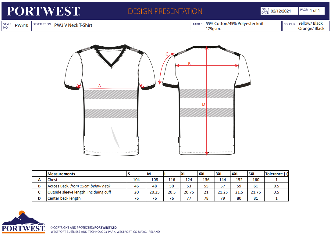 Datasheet - https://documents.portwest.com/datasheet.php?style=PW310&lang=GB&itemcol=PW310YBR&facility=902