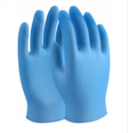 Disposable powderfree blue vinyl gloves.
