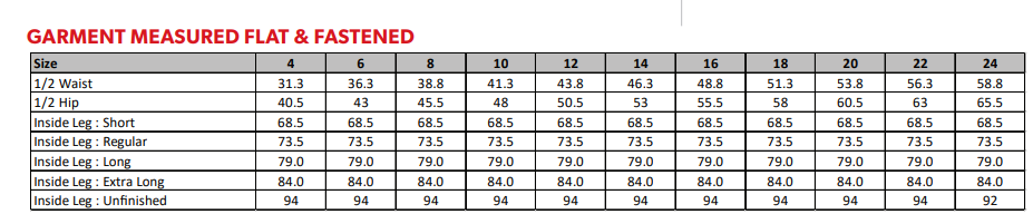 Half hem width at size 12R = 16cm