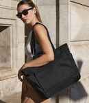 Recycled 600D polyester. Water repellent fabric. Lightly padded. Carry handles (35cm long). Shoulder straps (85cm long). Large main zip compartment. Internal zip pocket. Front zip pocket. Side pockets. Tear out label. Capacity 32 litres.