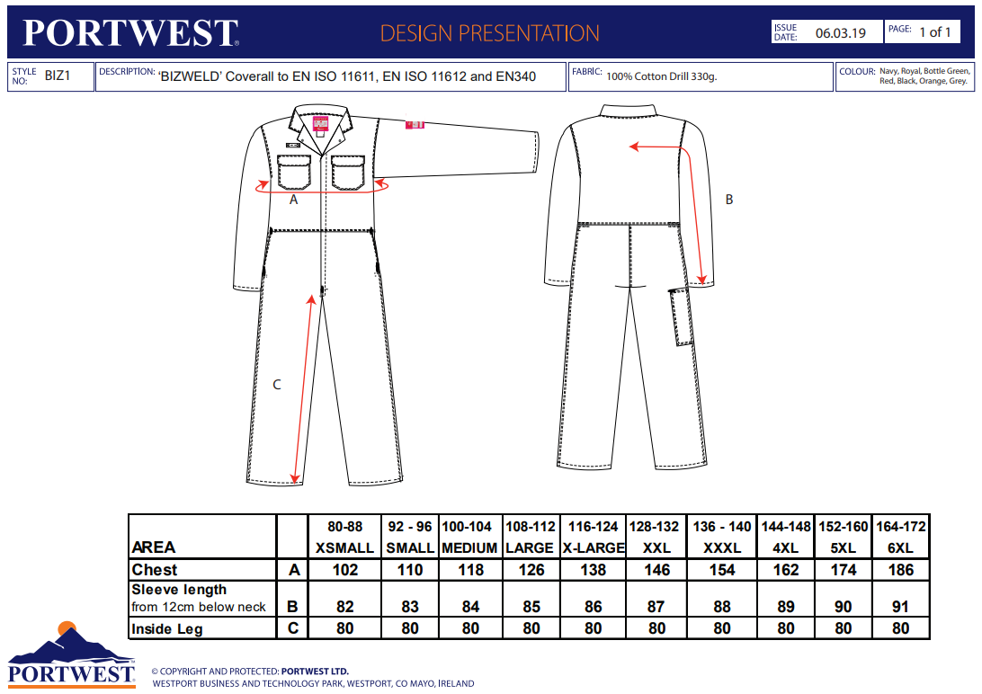 Datasheet - https://documents.portwest.com/datasheet.php?style=BIZ1&lang=GB&itemcol=BIZ1NAR&facility=902