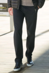 Slim fit, side pockets, rear welt pocket, belt loops.